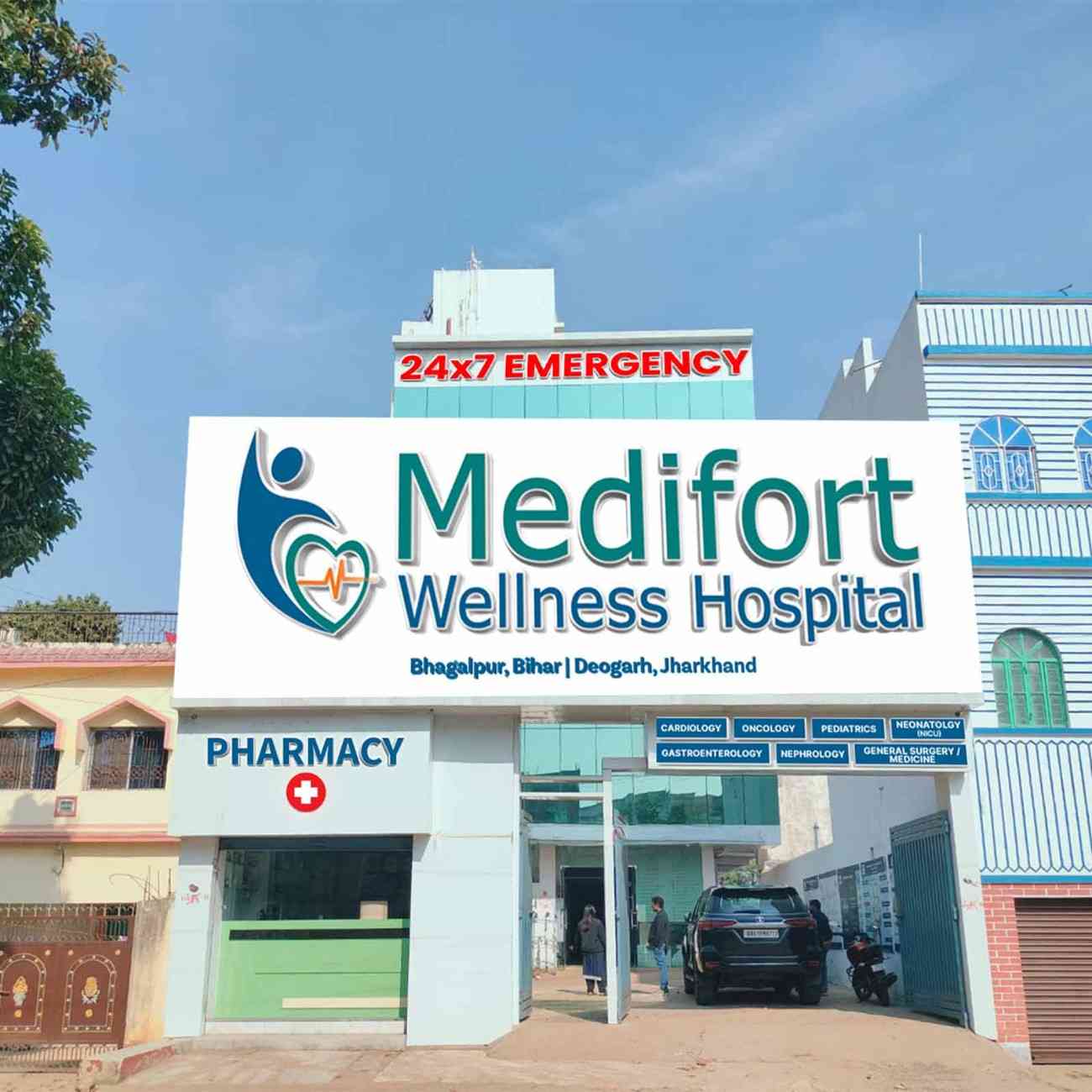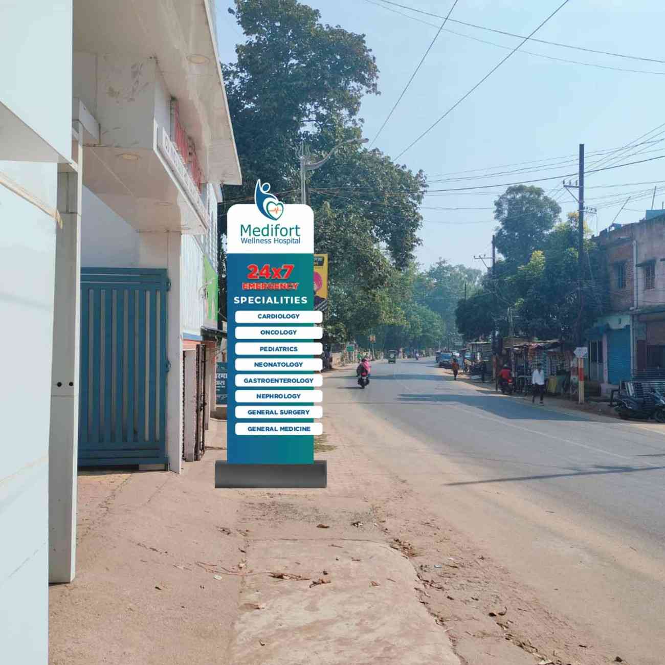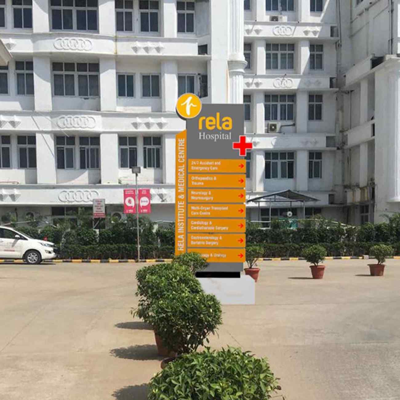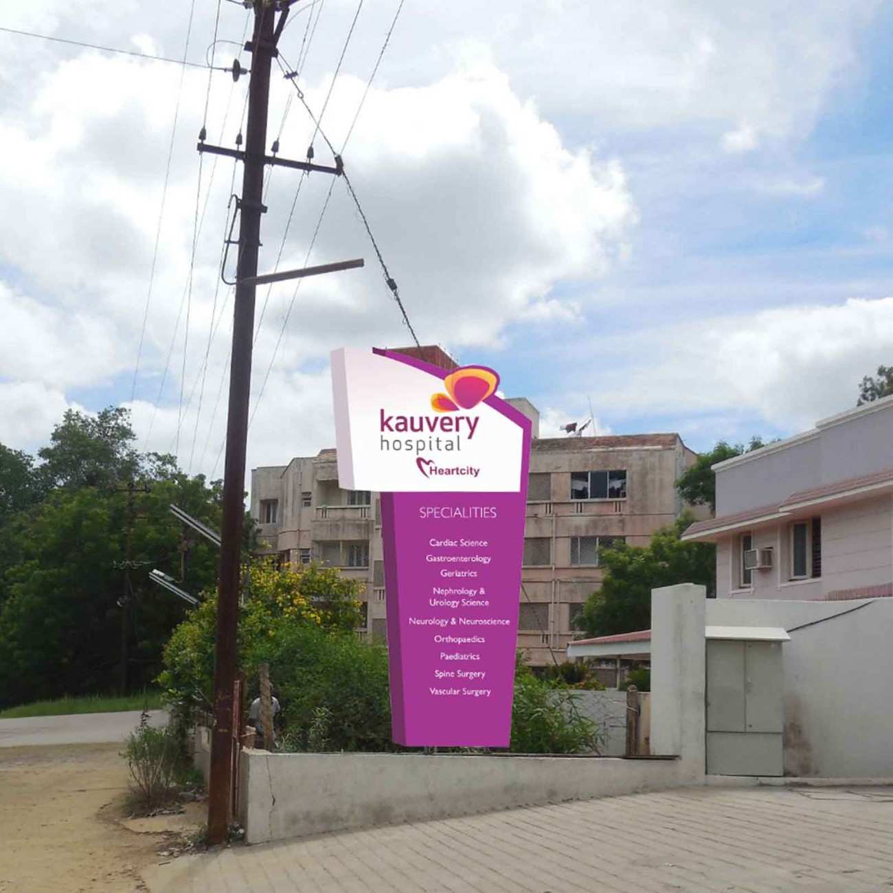 External Branding Ensure powerful first impressions with outdoor branding—from main signage to gate panels—designed for visibility, recognition, and brand recall. Main Hospital SignageEntrance Arch BrandingDepartment Sign BoardsAuto Back Panels / Bus Back AdsStreet Barricades / Gate BrandingUmbrella / Kiosk for CSR Activities