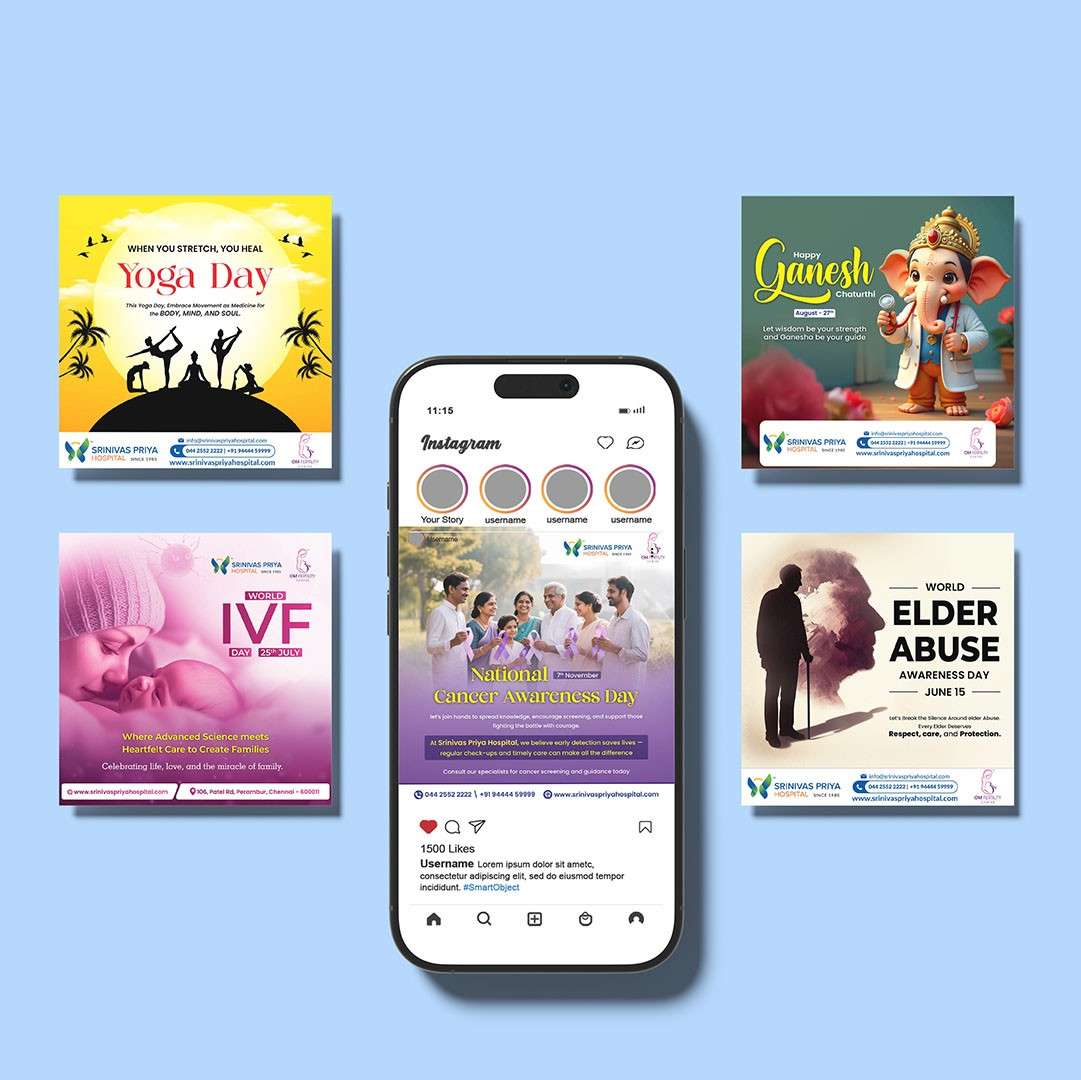 Social Media Marketing Transform your online presence with engaging social media strategies, creative content, and targeted campaigns that attract, educate, and convert your audience. Static postersAd creativesSpecial day postersFestival postersOffer postersThumbnailAnnouncement Posters